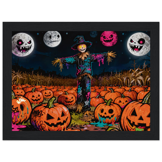 Pumpkin Neon Harvest – Espantapájaros del Terror | Arte Pop de Halloween con Calabazas y Graffiti