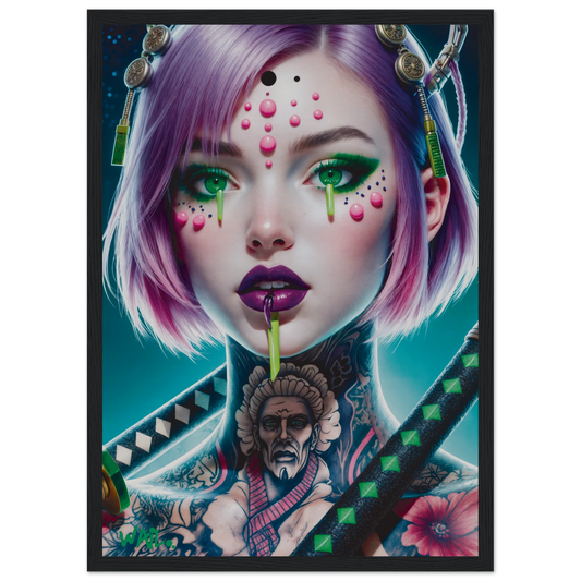 Nyra Katanashi – Arte ciberpunk con estética futurista y tatuajes