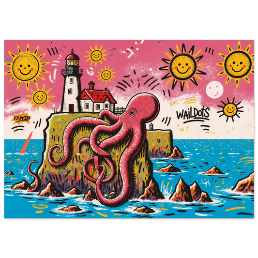 Beware of the Kraken – Ocean Landscape Wall Art | Sea Monster Poster & Nautical Decor