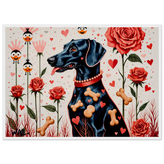 Bone Romance – Póster Pop Art de Perro Braco con Rosas y Corazones