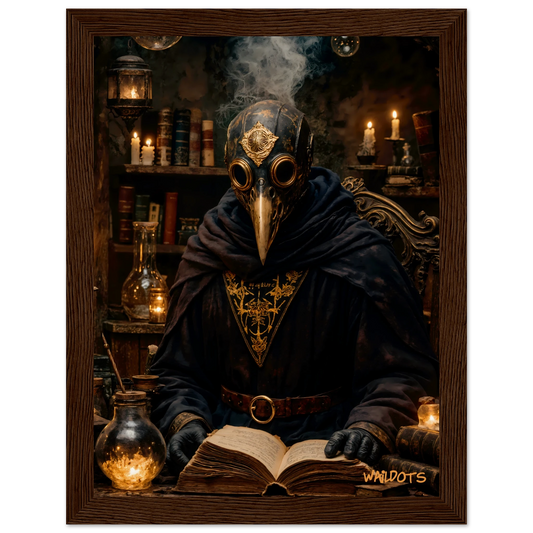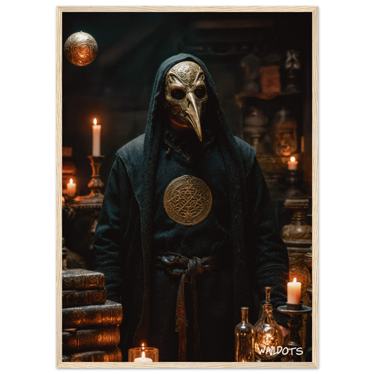 El Alquimista Oscuro – Poster de Arte místico con máscara de la peste y grimorio antiguo