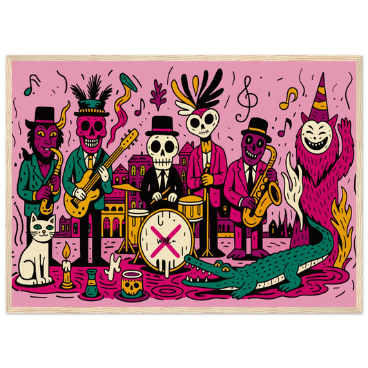 Bourbon Street – Poster New Orleans, jazz urbano y calaveras estilo pop art