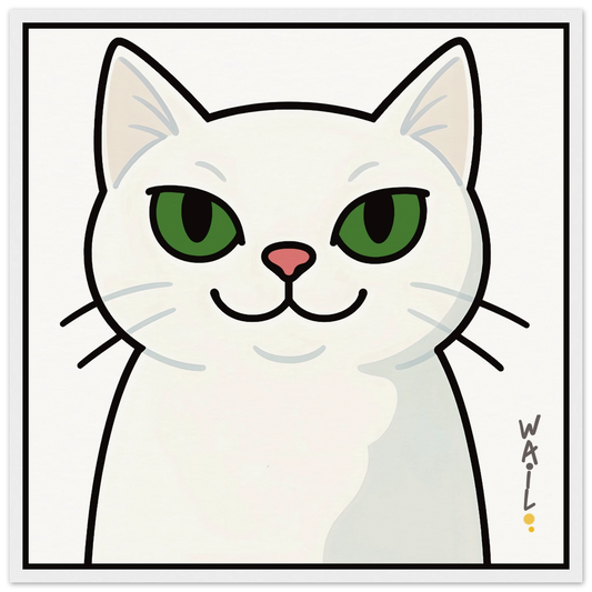 Floquet de Neu "Snowflake" - White Cat with Green Eyes Poster | Minimalist Pop Art