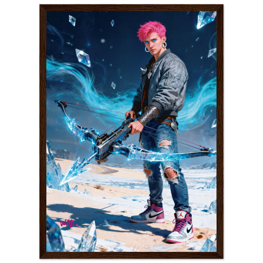 Crimson Bolt – Póster de guerrero de pelo rosa con arco de energía| Futurista